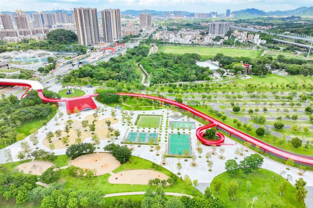 •項(xiàng)目概況:虹橋公園是光明區(qū)最靚麗的生態(tài)名片之一,公園整體規(guī)劃結(jié)構(gòu)為“一軸三區(qū)”,包括虹橋、入口運(yùn)動(dòng)區(qū)、碧湖運(yùn)動(dòng)區(qū)、森林運(yùn)動(dòng)區(qū)。其中,虹橋全長(zhǎng)4千米,寬5米,平均高度8米,是中國(guó)國(guó)內(nèi)第二大鋼結(jié)構(gòu)單柱多曲景觀橋,被譽(yù)為“光明紅絲帶”,是光明區(qū)最熱門(mén)的網(wǎng)紅打卡地之一。