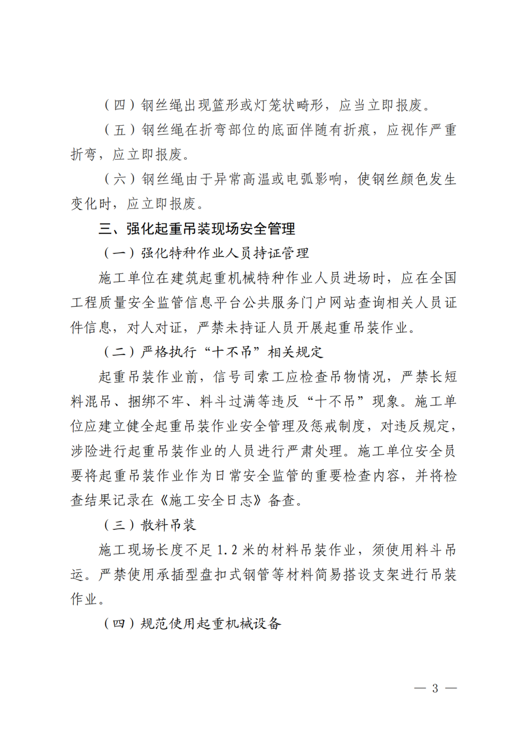 自本通知印發(fā)之日起,全市在建項目應(yīng)立即開展自查自糾,組織起重吊裝相關(guān)作業(yè)人員開展再教育,提高作業(yè)人員對起重吊裝作業(yè)的重視程度,強化安全意識,規(guī)范作業(yè)行為。