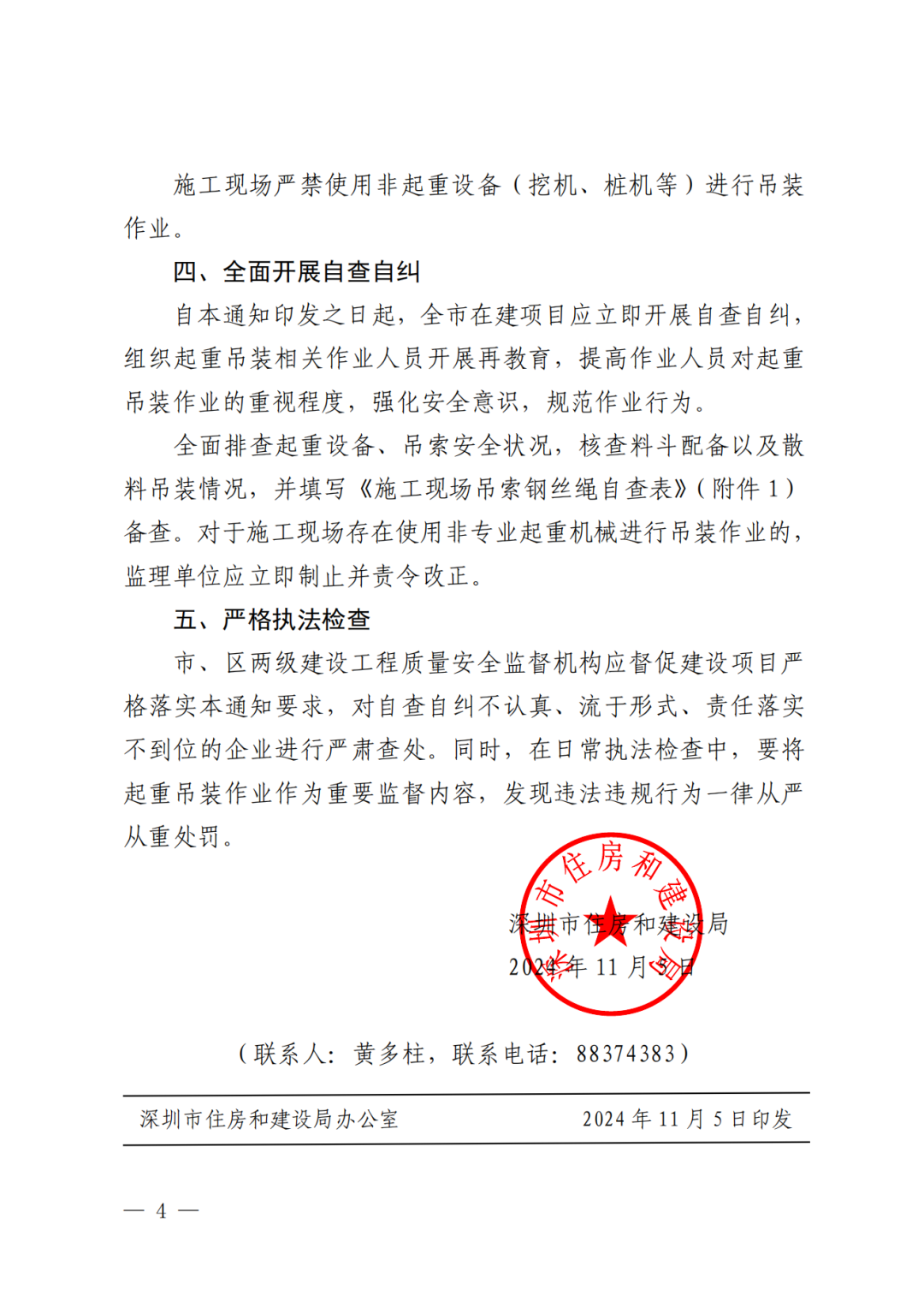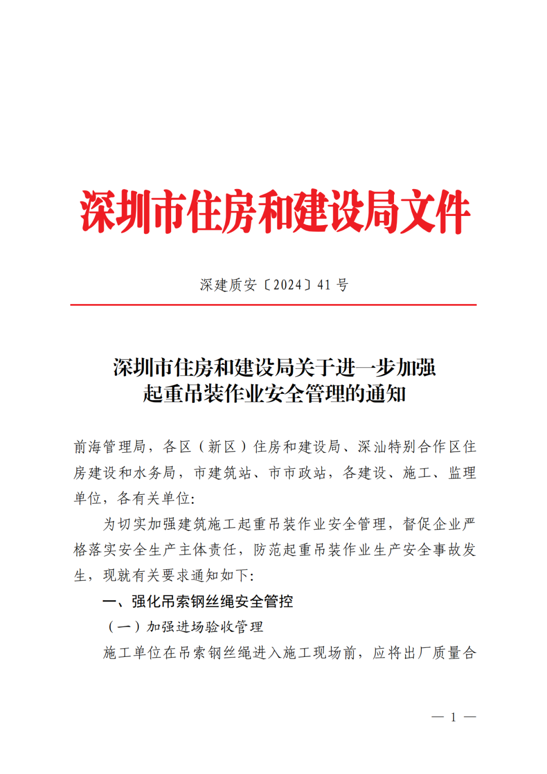 近日,深圳市住建局發(fā)布《關(guān)于進(jìn)一步加強起重吊裝作業(yè)安全管理的通知》(深建質(zhì)安〔2024〕41 號)。
