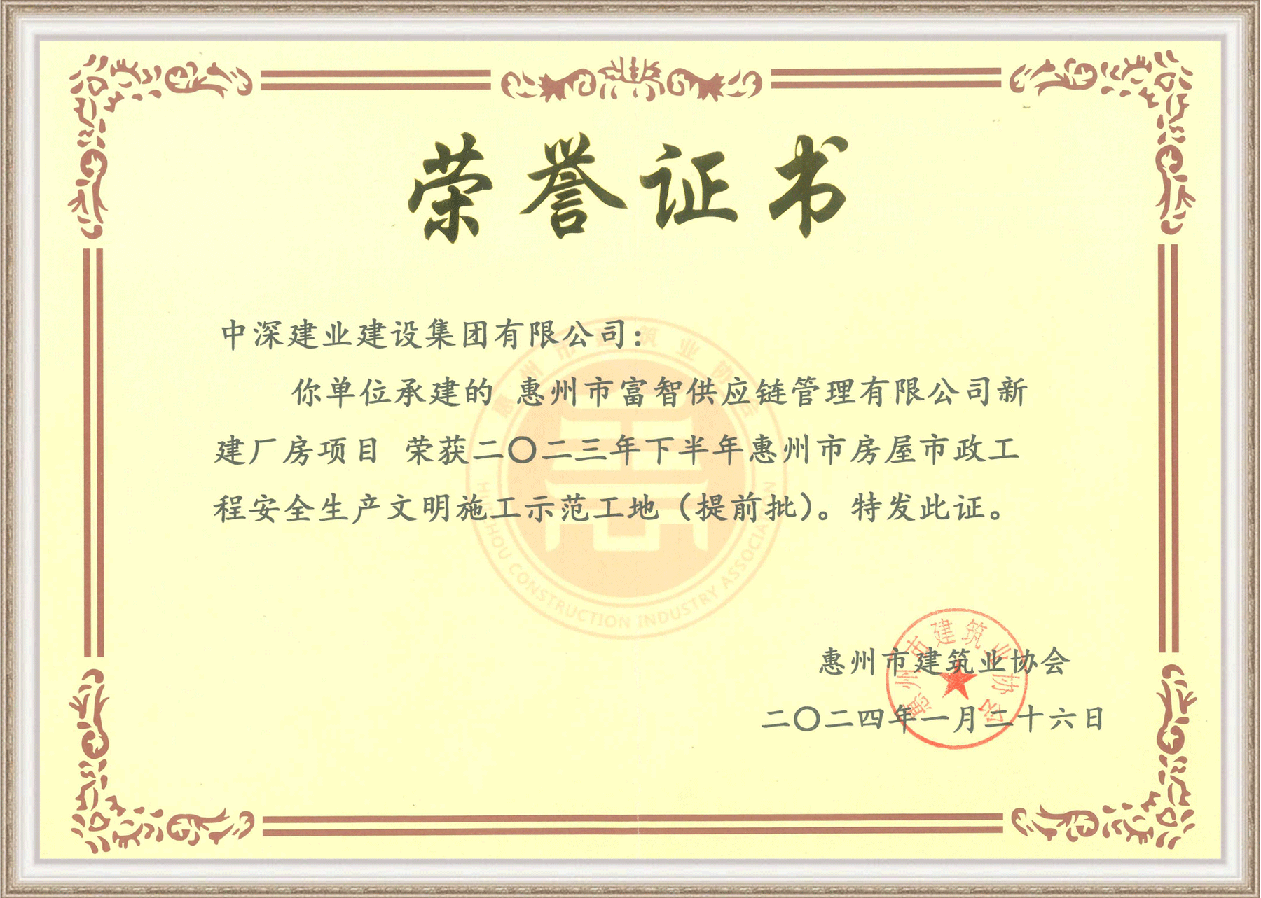 2023年下半年惠州市房屋市政工程安全生產文明施工示范工地——惠州市富智供應鏈管理有限公司新建 廠房項目