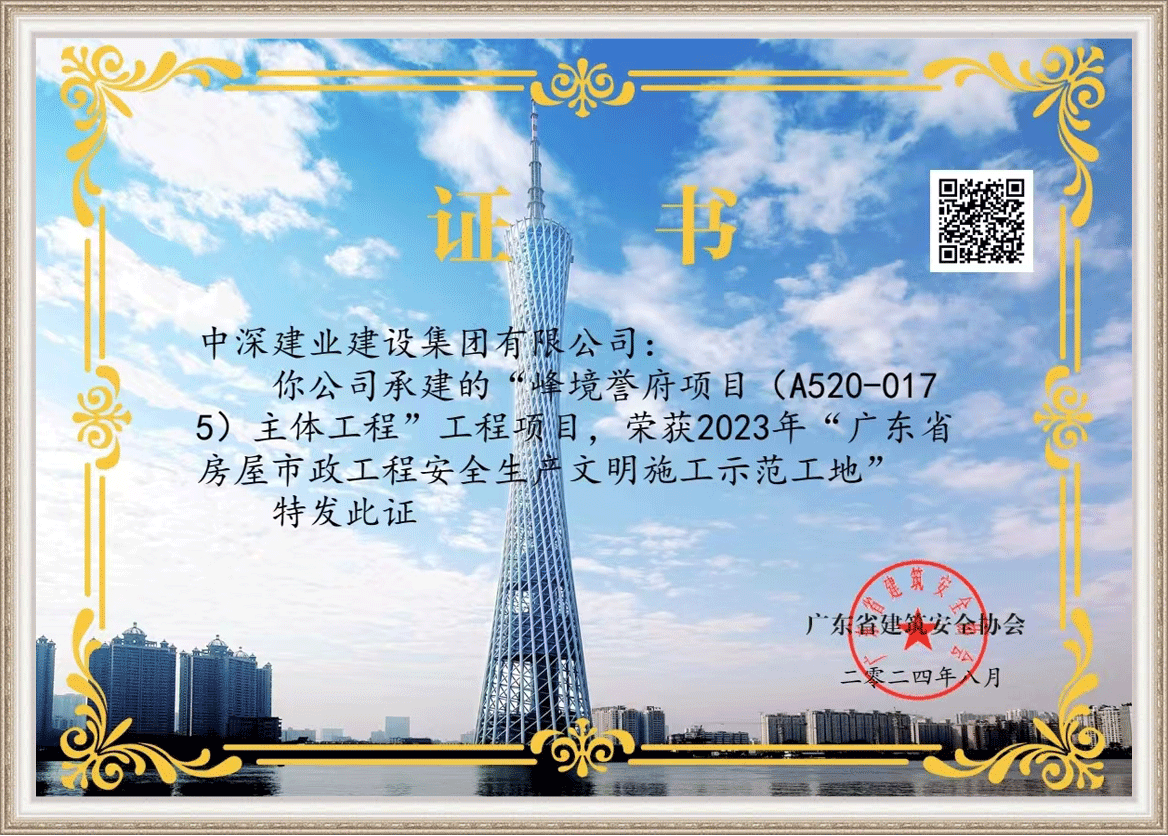 2023年“廣東省房屋市政工程安全生產(chǎn)文明施工示范工地”——峰鏡譽(yù)府項(xiàng)目(A520-0175)主體工程