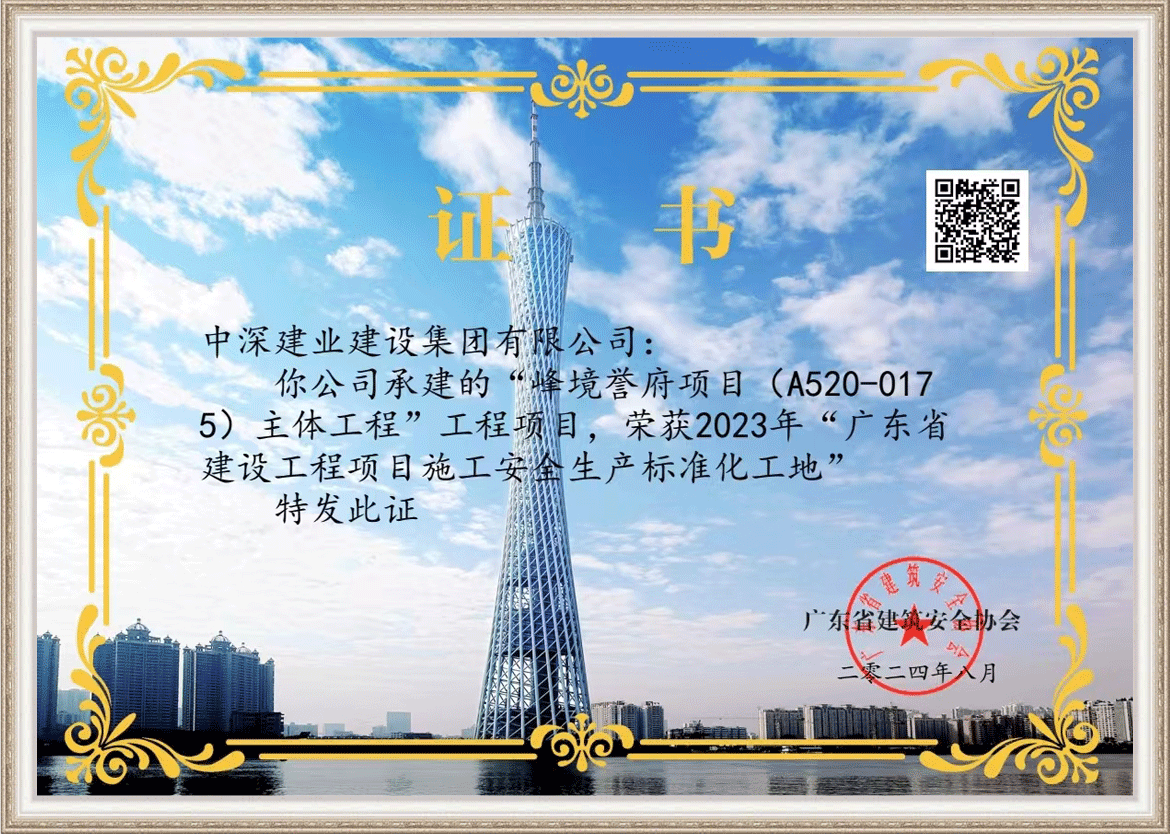 2023年“廣東省建設工程項目施工安全生產標準化工地”——峰鏡譽府項目(A520-0175)主體工程