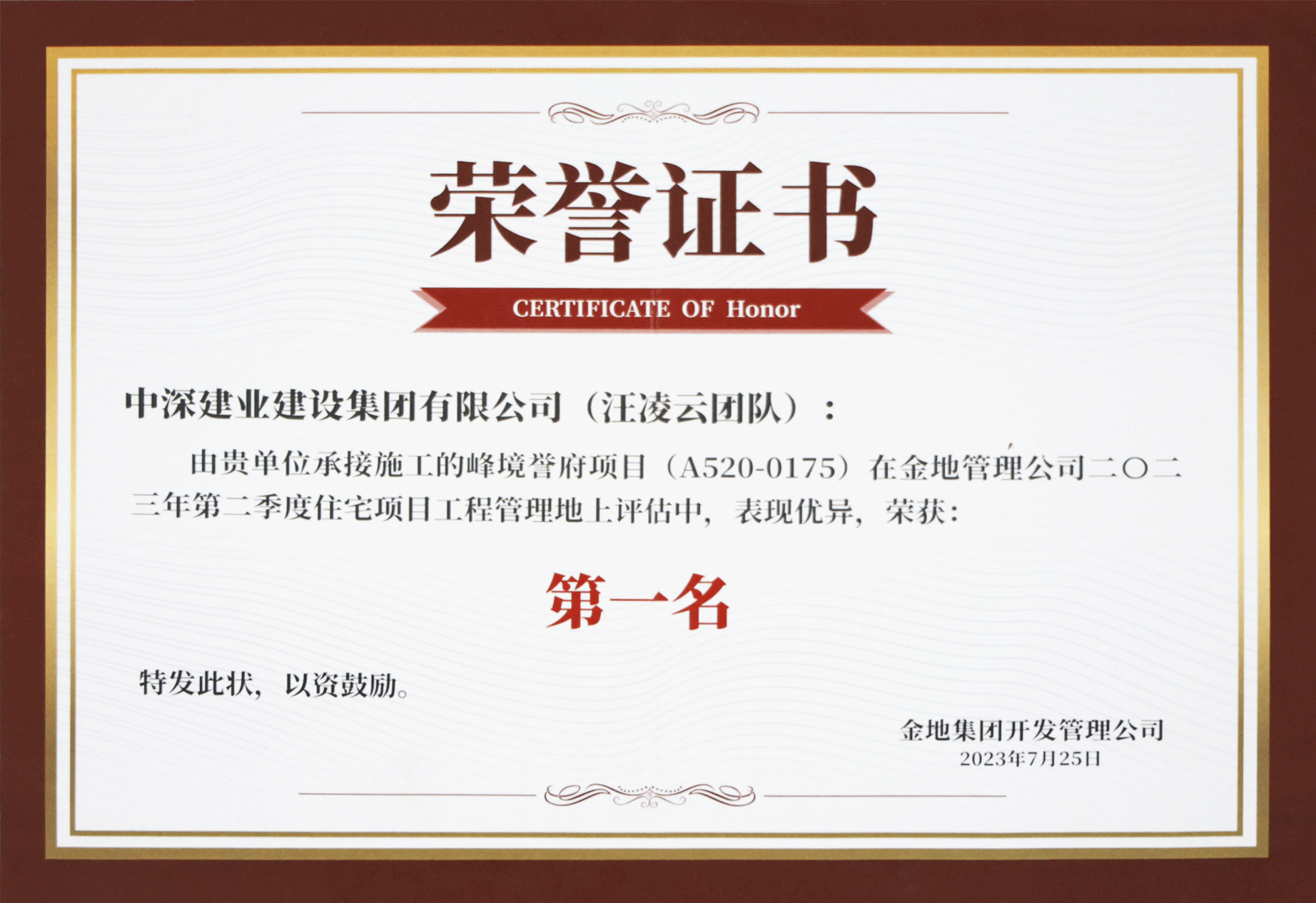2023年第二季度住宅項(xiàng)目工程管理地上評估第一名——峰鏡譽(yù)府項(xiàng)目(A520-0175)主體工程
