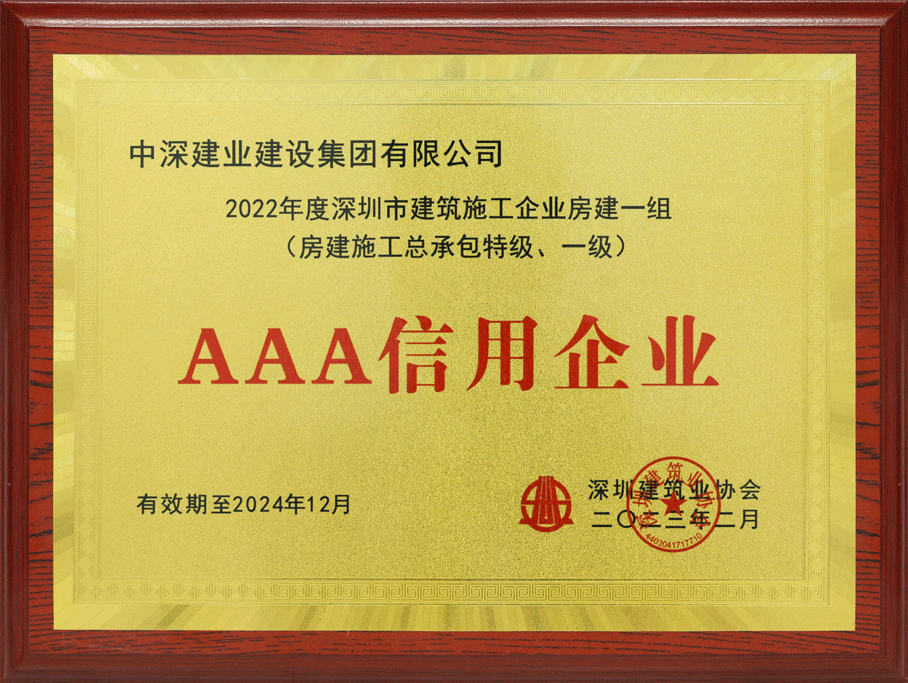 2022年度深圳市建筑施工企業(yè)房建一組(房建施工總承包特級、一級)AAA信用企業(yè)