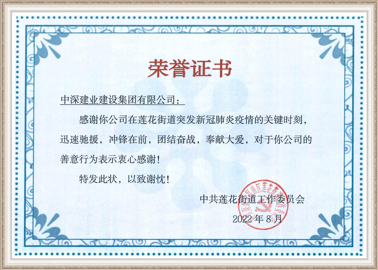2022年度積極配合蓮花街道突發新冠肺炎疫情抗爭——感謝證書