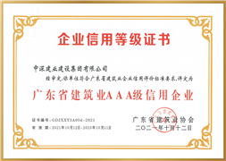 2021年度廣東省建筑業(yè)AAA級信用企業(yè)——廣東省建筑業(yè)協(xié)會(huì)認(rèn)證