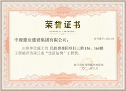 2021年度商丘市“優(yōu)質(zhì)結(jié)構(gòu)”工程獎(jiǎng)——民權(quán)碧桂園項(xiàng)目三期 15#、16#樓工程