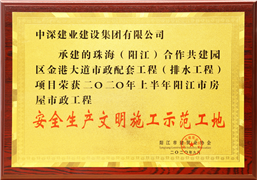 2020年上半年“陽江市房屋市政工程安全生產(chǎn)文明施工示范工地”——珠海(陽江)合作共建園區(qū)金港大道市政配套工程(排水工程)項(xiàng)目